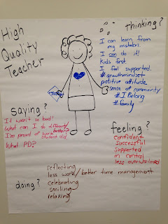 We also had them identify the things that a high quality teacher says, thinks, does and feels. What would we hope to see in our new teachers by the end of the year? I felt like the group really did a nice job of summing up not only what I hope for all our new staff, but also what I hope I represent myself every day of the coming school year.